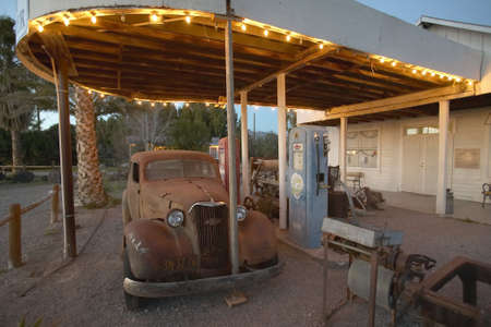 An old car at an old antique gas station in California near Death Valley National Park entrance