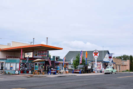 Seligman, Arizona - July 24: Views of the route 66 decorations in the city of Seligman in Arizona on july 24, 2017. Seligman is a small city along the historic route 66.