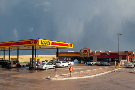 WYOMING,USA - JULY 27,2013: Typical americal petrol station near the Denver before heavy storm.