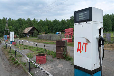 KAMCHATKA PENINSULA, RUSSIAN FAR EAST - 30 JULY, 2018: Old Soviet fuel dispenser with electronic scoreboard for diesel fuel at provincial gas station in Kozyrevsk Village (Ust-Kamchatsky District).