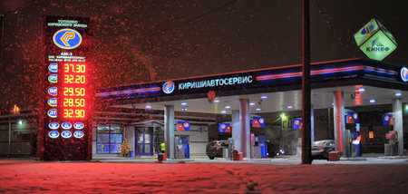 Russia, St. Petersburg 18,01,2014 Kirishavtoservis gas station in winter at night
