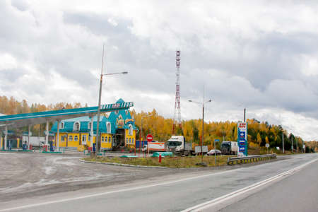 Revda, Russia - October 02.2016: Gasoline station and cargo waggons on a parking