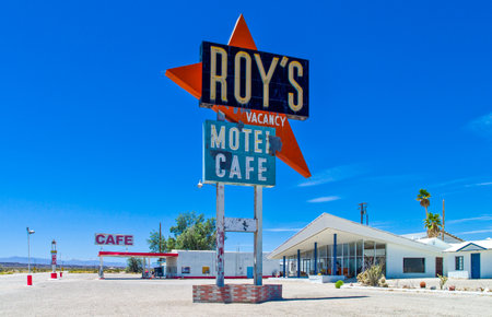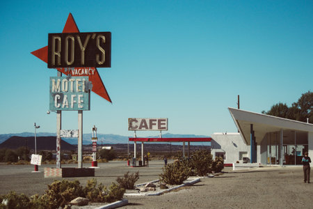 Amboy, U.S.A. - May 27, 2011: California, the vintage Roy's motel and cafe on the Route 66