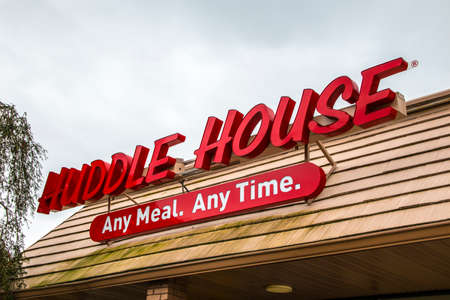 Augusta, Ga USA - 11 29 20: Huddle House Restaurant closed building sign close up