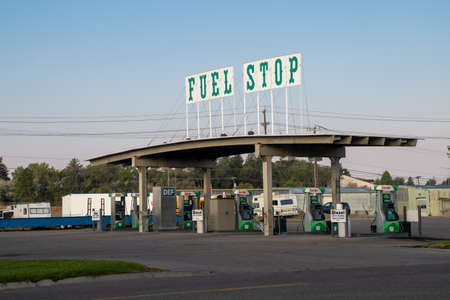 Idaho Falls, Idaho - September 22, 2020: A Sinclair gas station called Fuel Stop with an interesting vintage sign on top of the roof