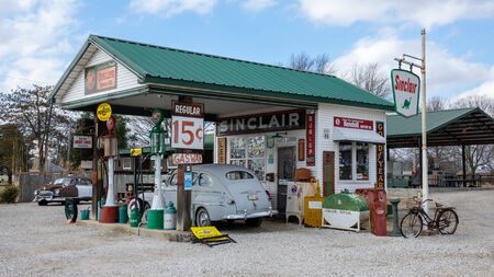Mount Olive, Illinois - July 17, 2017. Soulsby service station in Mount Olive, Illinois. This station is an example of a house with canopy building. National register of historic places.