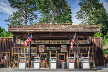 Winthrop, Wa. USA -June 18, 2009 : typical western style gas station and store at Winthrop, Washington