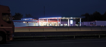 Evening at a selfservice gas station at the A44 highway in Sassenheim the Netherlands.