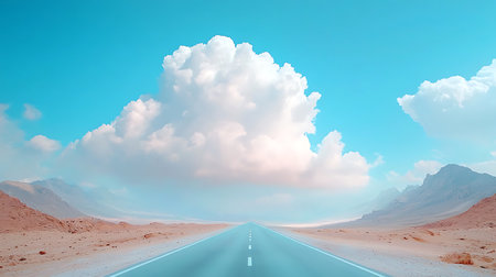 Capture the essence of freedom and exploration with this scenic image of an open road leading to a vast blue sky adorned with fluffy clouds.