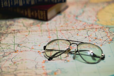 abstract scene spectacles on page geographical atlas