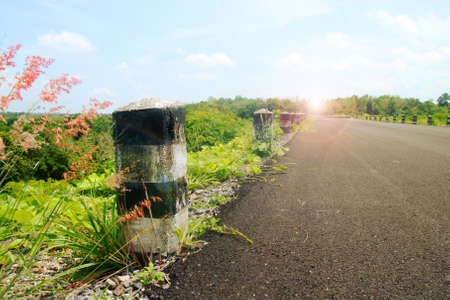 Asphalt road along the pasture in countryside of Thailand, retro color style