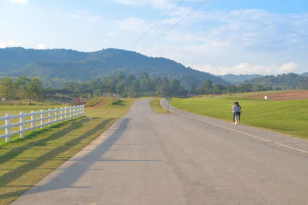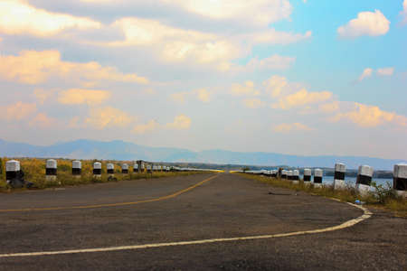 long road to the mountains in Muang Lamphun Thailand .Landscape with sunset sky and beautiful in the evening
