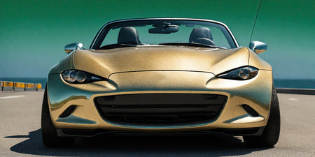 Vintage sports car driving on the road, chrome bumper shining generated by artificial intelligence