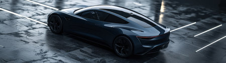 A blue car is parked on a cobblestone street, surrounded by historic architecture, A vintage sports car parked on a cobblestone street, AI Generated