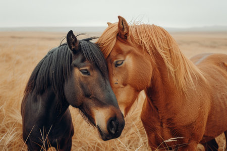 A Close-Up of Two Horses in Mutual Solace. Generative AI