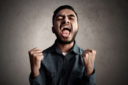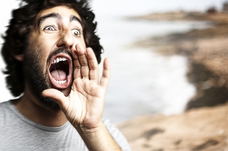 Young man shouting and screaming.