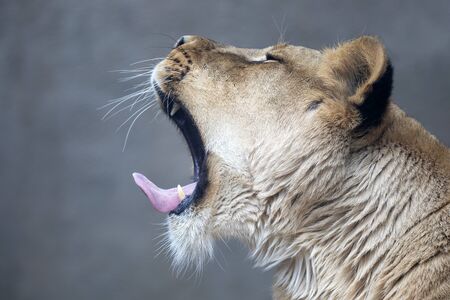 Portrait of a female lion roaring