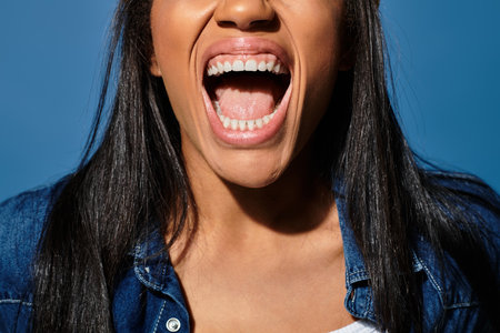 woman laughing with mouth open