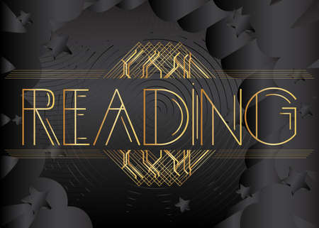Art Deco Reading text. Decorative greeting card, sign with vintage letters.