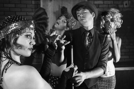flapper girls and young gangster smoking in the bar