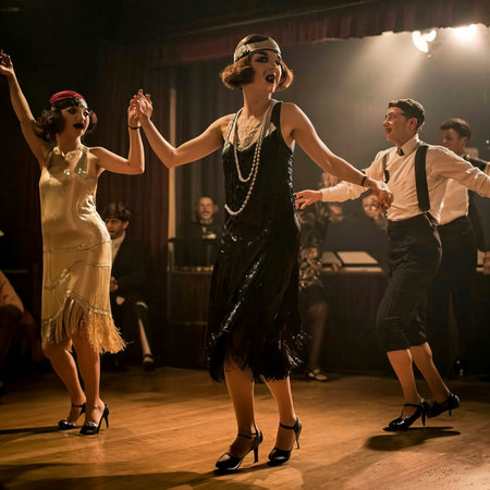 Sophisticated flappers dancing at a 1920s jazz club