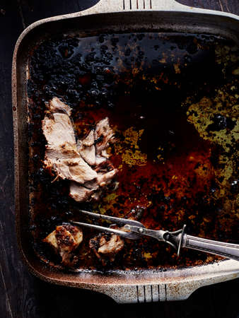 Cooked lamb in baking dish