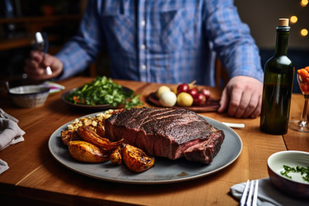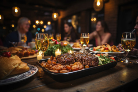 Australian beef steak on dish surround with people. Food concept. Generative AI