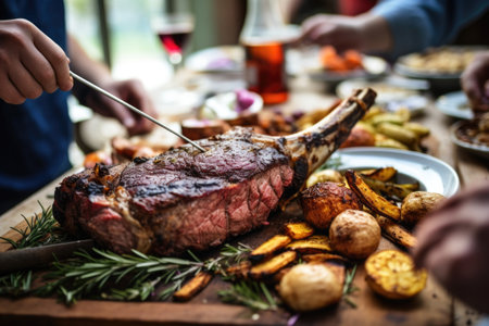 roasted meat over easter table : Generative AI