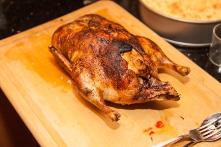 roast duck on the fire, close-up