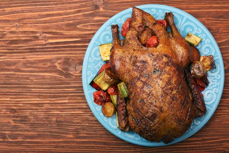 Festive roast duck with vegetables