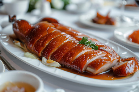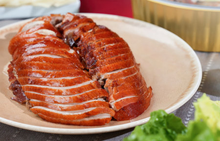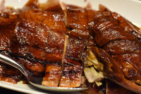Sliced roast duck delicacy on a Chinese platter