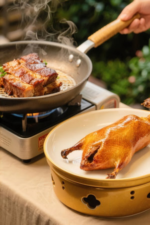 roast duck with szechuan peppercorn and scallions, created with generative ai