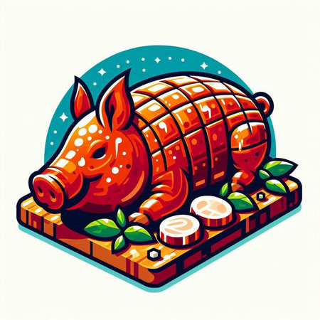 Freshly baked crispy suckling pork, a whole pig with crispy skin