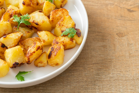 Roasted or grilled potatoes on plate