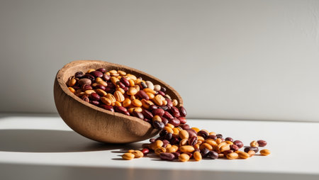 AI Generated. Rustic Wooden Bowl Filled with Various Beans