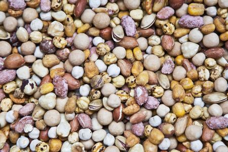 Assortment of many kinds of beans, nuts for animal feed
