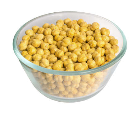 Roasted Crispy Chickpeas or Chana Snack with Salt in Round Bowl Isolated on White Background
