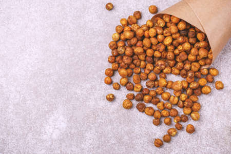 Traditional roasted chickpeas with spicy spices. Selective focus.