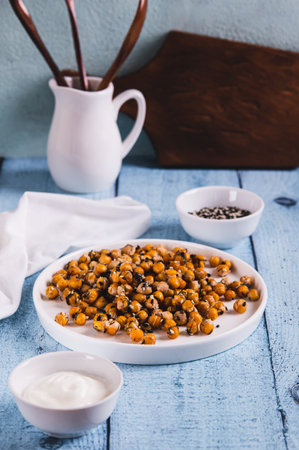 Spicy roasted chickpeas. Healthy and vegetarian food