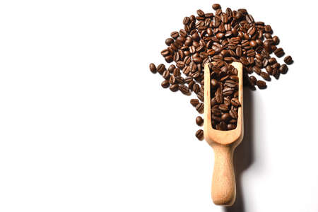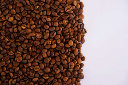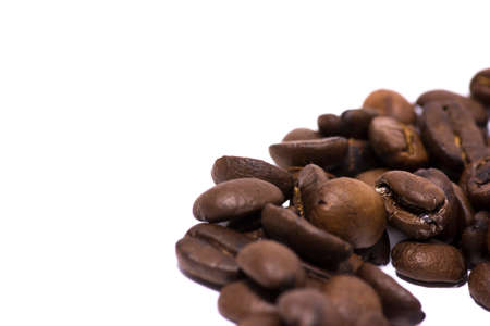Fresh roasted Coffee beans isolated on white background with copy space