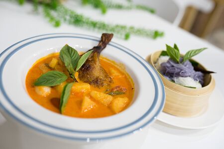 Roasted Duck Red curry or red curry with roasted duck, duck curry dish
