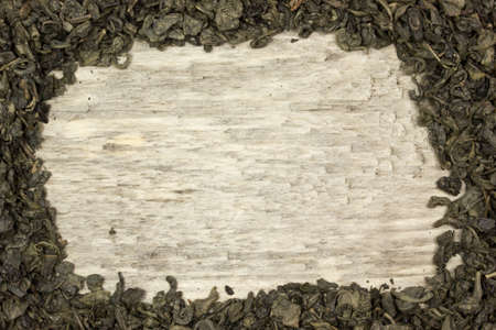 Dry green tea as a background. Place for text