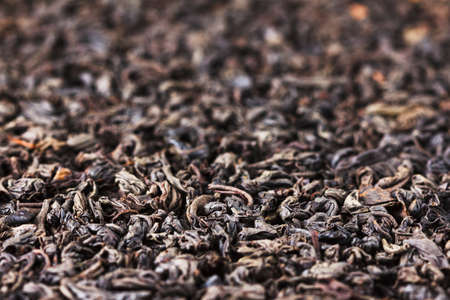 The texture of dry black tea, closeup herbal ingredient drink abstraction background.