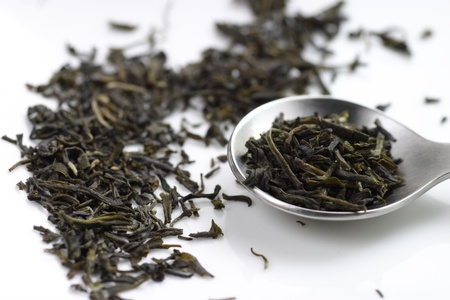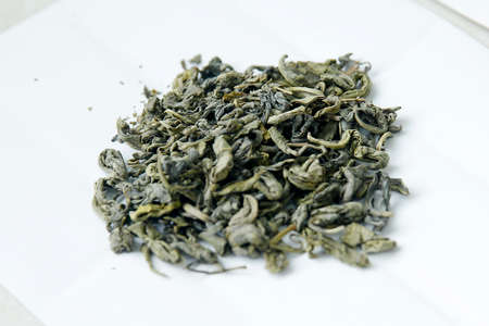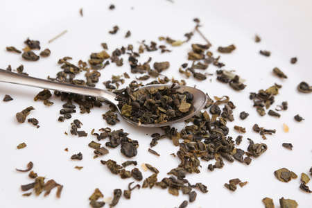 Japanese or Chinese tea leaf on white background. selective focus.