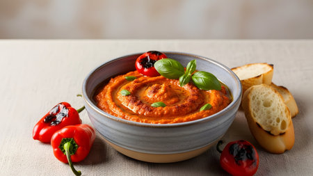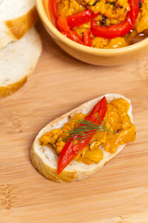 Appetizer Roasted Yellow and Red Bell Pepper Spread with bread