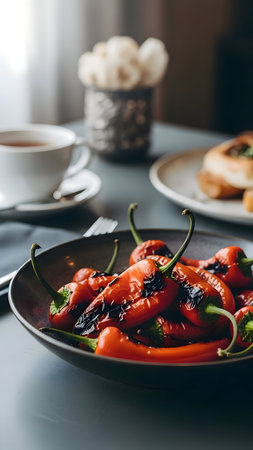 Fresh, tasty and healthy fried red pepper salad full of vitamins and antioxidants - ideal for food blog