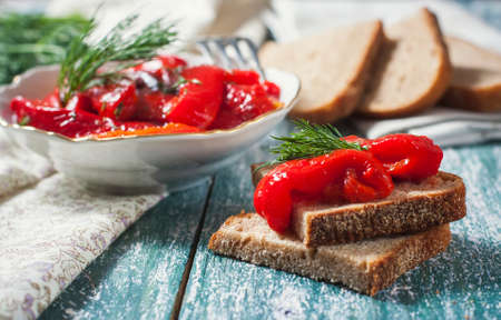 Roasted Pepper Appetizer Salad Spread. Selective focus.