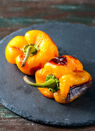Baked, Roasted Red pepper on grill. Healthy vegetables