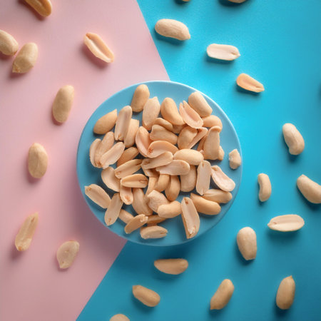 peanuts slices, isolated on a soft blue and Pink Pastel