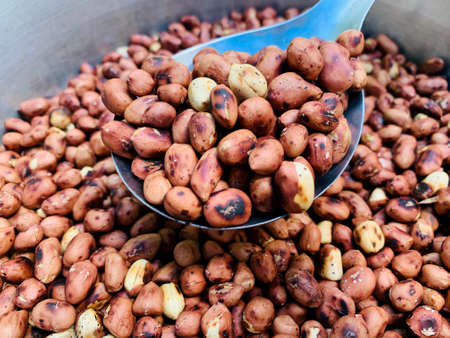 Roast peanuts kernel in ladle, Food ingredient and raw food for vegetarian.